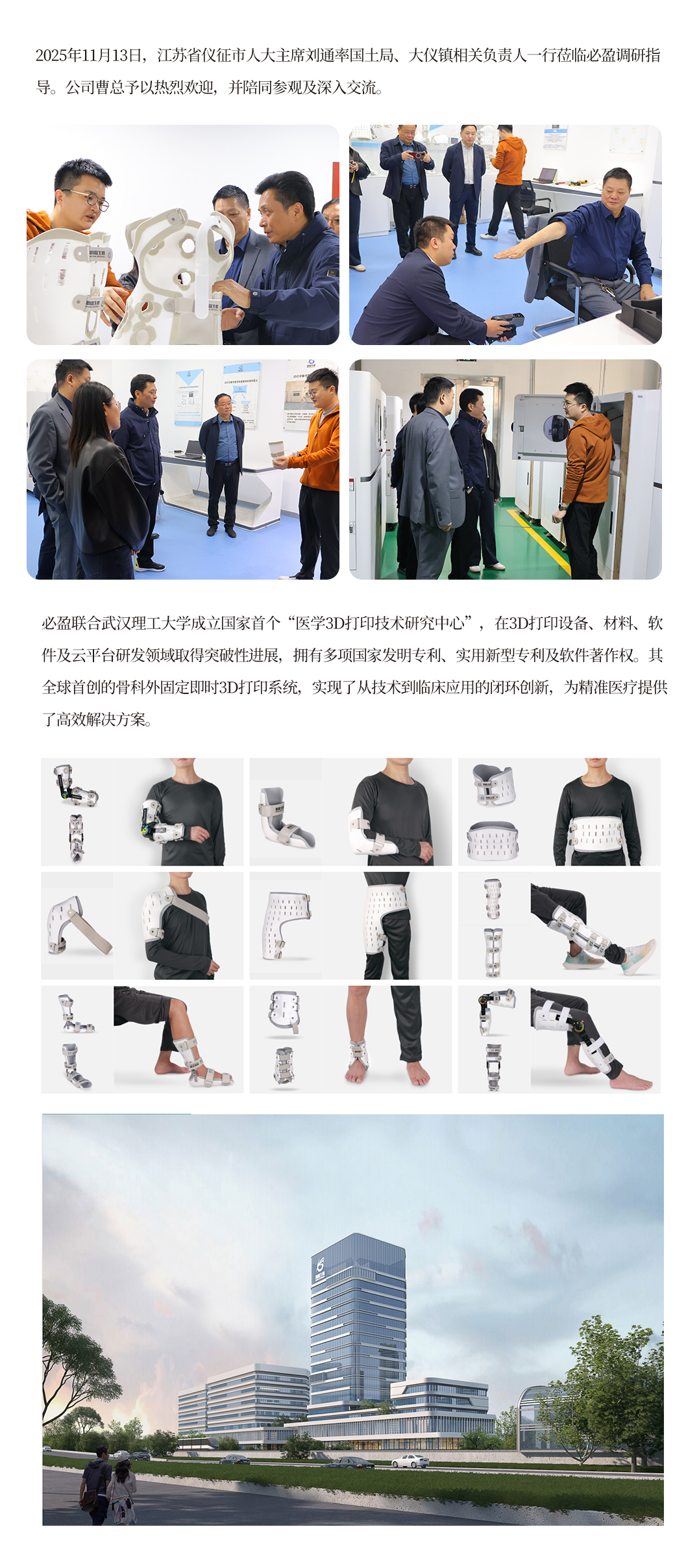 2025年11月13日江苏省扬州市仪征市人大主席刘通,国土局副局长、大仪镇副镇长李金鱼一行领导莅临必盈参观考察