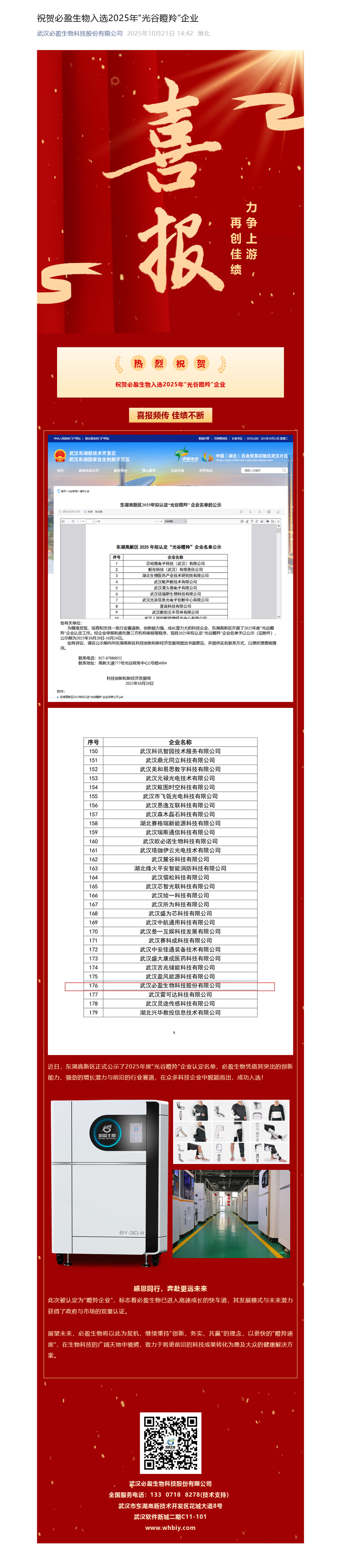 祝贺必盈生物入选2025年“光谷瞪羚”企业