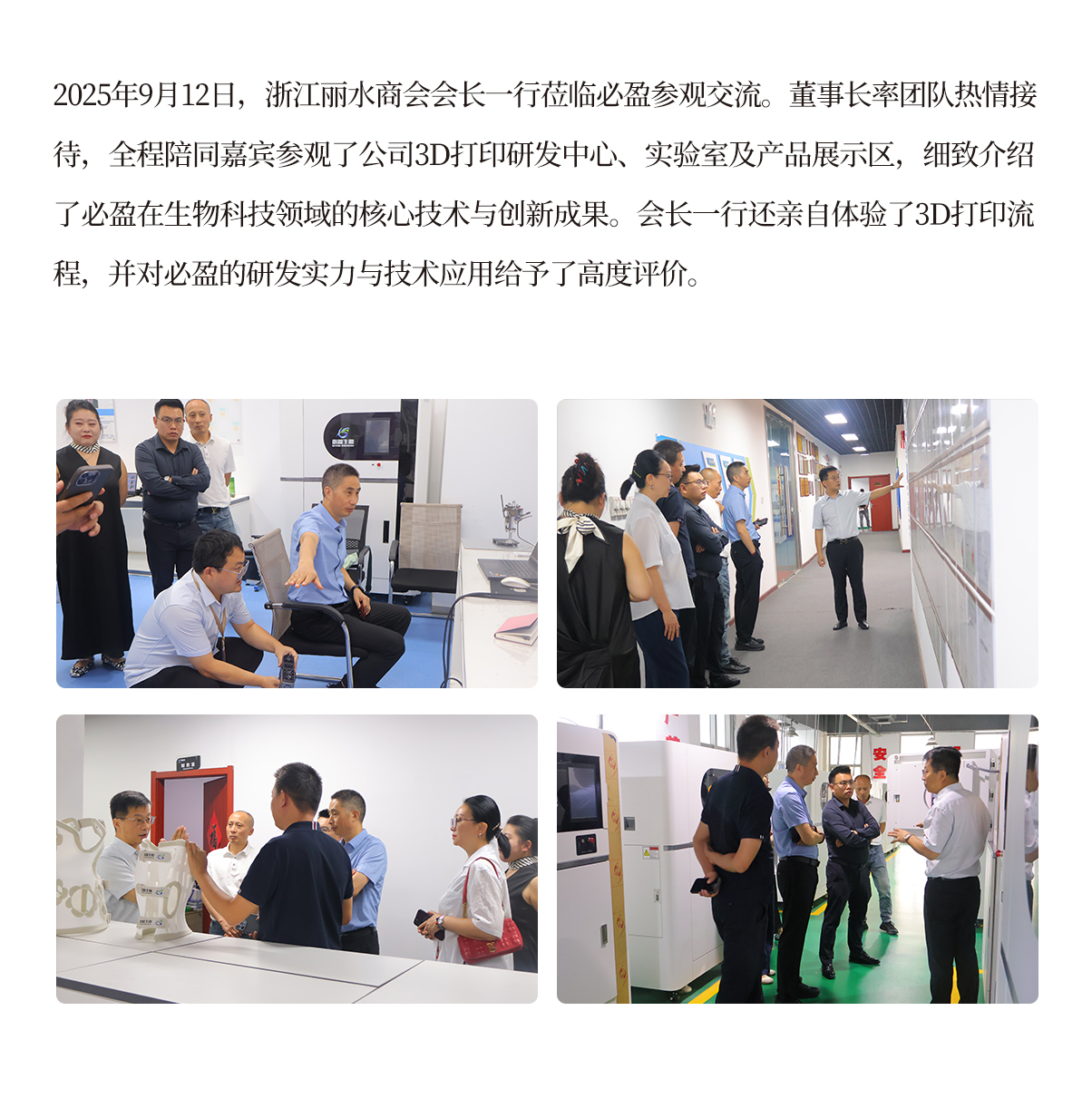 2025年9月12日浙江丽水的商会会长一行人莅临必盈参观,必盈董事长携必盈3D打印团队热情接待
